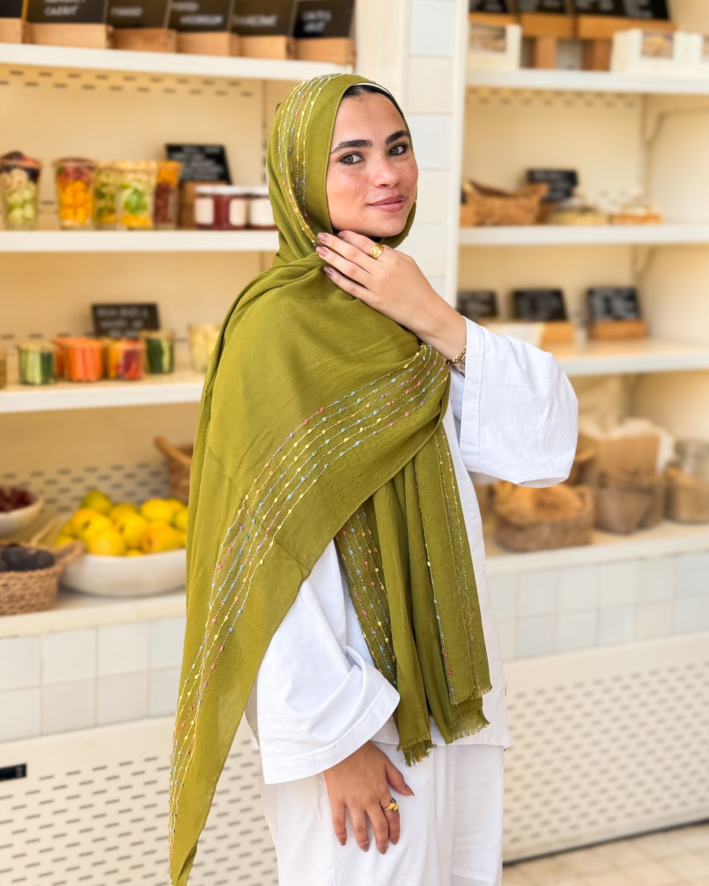 Twist of Lines Hijab - Lime